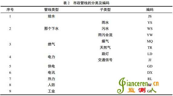 由于管線大多埋于地下,對于監(jiān)測單位很難對其進行調(diào)查,僅能通過設(shè)計單位提供的綜合管線圖以及現(xiàn)場反饋的情況進行了解。從監(jiān)測的角度來說,應(yīng)特別注意空間上與工程有緊密關(guān)系且有壓力的管線。市政管線的類型可參考下表。