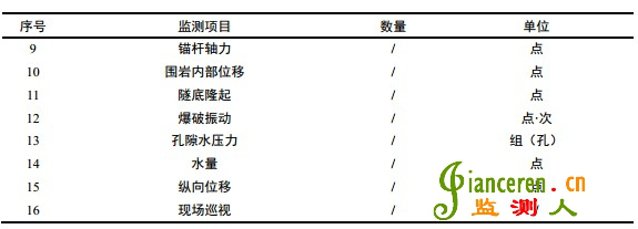 本部分應(yīng)根據(jù)合同文件、設(shè)計圖紙、監(jiān)測范圍以及工程實際情況,列出應(yīng)當(dāng)進行監(jiān)測的項目的詳細名稱。若編寫方案時,監(jiān)測工作量已經(jīng)確定,可列出各監(jiān)測項目的詳細工作量,且注明單位,統(tǒng)計形式可參考下表。