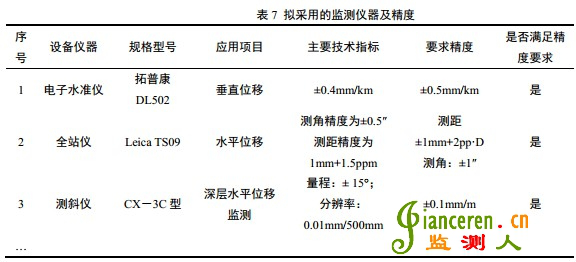 方案提到的精度一般有監(jiān)測方法的精度與監(jiān)測儀器的精度兩種,前者一般僅針對豎向和水平位移的項目,對其他監(jiān)測項目多以儀器設(shè)備或元器件的自身精度代替;后者是針對具體型號的儀器或元器件而言。
