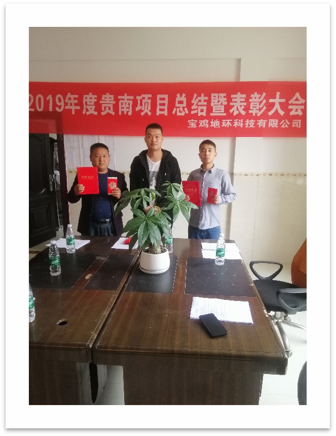 2020年1月13日,寶雞地環(huán)科技有限公司在貴南項(xiàng)目部召開項(xiàng)目年終總結(jié)暨表彰大會。貴南項(xiàng)目全體成員參會,公司總經(jīng)理安義兵代表公司為此次大會發(fā)來了賀信。